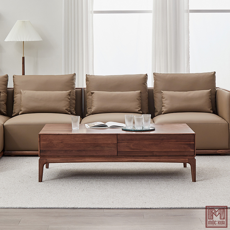 Bàn Trà Gỗ Sồi Mộc Xưa Chất liệu: Gỗ Tần Bì Ash kết hợp plywood veneer Ash, (Có thể lựa chọn loại gỗ khác như gỗ óc chó) Kích thước: 1200x600x420 Mặt Bàn: vân gỗ tự nhiên Màu sắc: màu nâu óc chó, màu vàng gỗ tự nhiên