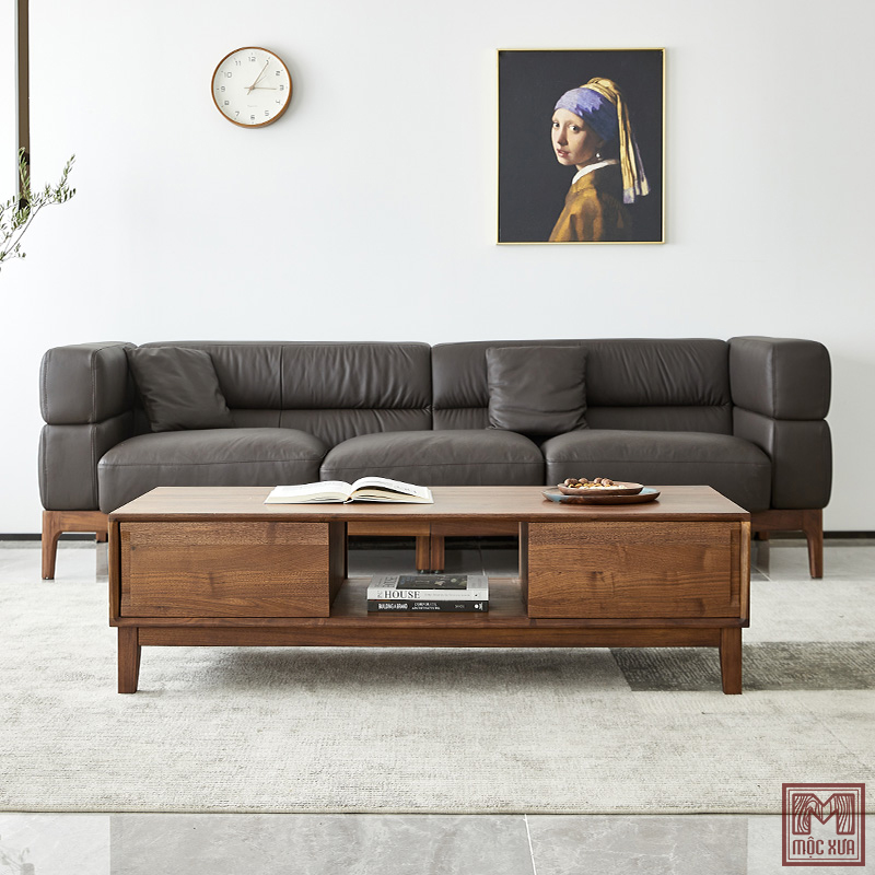 Bàn Trà Gỗ Sồi Mộc Xưa Chất liệu: Gỗ Tần Bì Ash kết hợp plywood veneer Ash, (Có thể lựa chọn loại gỗ khác như gỗ óc chó) Kích thước: 1300x600x420 Mặt Bàn: vân gỗ tự nhiên Màu sắc: màu nâu óc chó, màu vàng gỗ tự nhiên