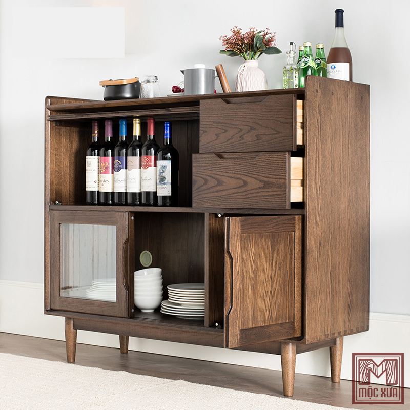 Chiếc tủ ly là sản phẩm rất tiện dụng vừa để chứa đồ vừa để trang trí giúp không gian bếp trở nên đặc biệt hơn, ấn tượng hơn.