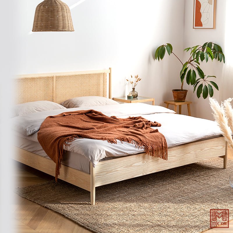 Giường Ngủ 0715.600.000 VNĐGiường là đồ dùng nội thất không thể thiếu trong không gian phòng ngủ. Đó là nơi giúp ta có thể nghỉ ngơi sau một ngày làm việc mệt mỏi. Giường giúp ta thả mình vào một giấc ngủ say, tìm về sự yên bình trong tâm trí. Một chiếc giường êm ái sẽ giúp bạn có một sức khoẻ tốt Tại Sao Nên Chọn Giường Ngủ Tại Mộc Xưa - Chất lượng ưu tiên. Giường được làm từ chất liệu gỗ sồi có phẩm cấp cao nhất, phụ kiện uy tín hàng đầu. - Phong cách rustic độc đáo, đem lại vẻ đẹp tươi mới cho phòng ngủ. - Thiết kế tinh xảo, gia công kỹ càng, đảm bảo bền, đẹp và không lỗi mốt. - Được xử lí tẩm sấy, hạn chế sự xâm lấn của mối mọt, cong vênh, đem lại sự yên tâm cho mỗi gia chủ - Chăm sóc trọn đời, tận tâm, nhiệt tình. THÔNG TIN CHI TIẾT: Chất liệu: Gỗ Tần Bì Ash, phản là plywood veneer Ash, đầu giường phủ mây đan mắt cáo Kích thước: 1600x2000, 1800x2000 và 2000x2200 ( Bạn có thể đặt theo kích thước mình muốn) Màu sắc: Màu gỗ tự nhiên, màu nâu hạt dẻ Bảo hành: 1 năm ( Nếu do lỗi của nhà sản xuất) Thời gian giao hàng: 7 - 10 ngày sau khi đặt hàng.