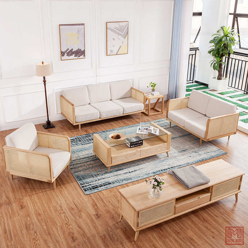Bàn Trà 068.500.000 VNĐBàn Trà Gỗ Sồi Mộc Xưa Chất liệu: Gỗ Tần Bì Ash kết hợp plywood veneer Ash, mây đan tự nhiên (Có thể lựa chọn loại gỗ khác như gỗ óc chó) Kích thước: 1200x600x420 Mặt Bàn: vân gỗ tự nhiên Màu sắc: màu nâu óc chó, màu vàng gỗ tự nhiên