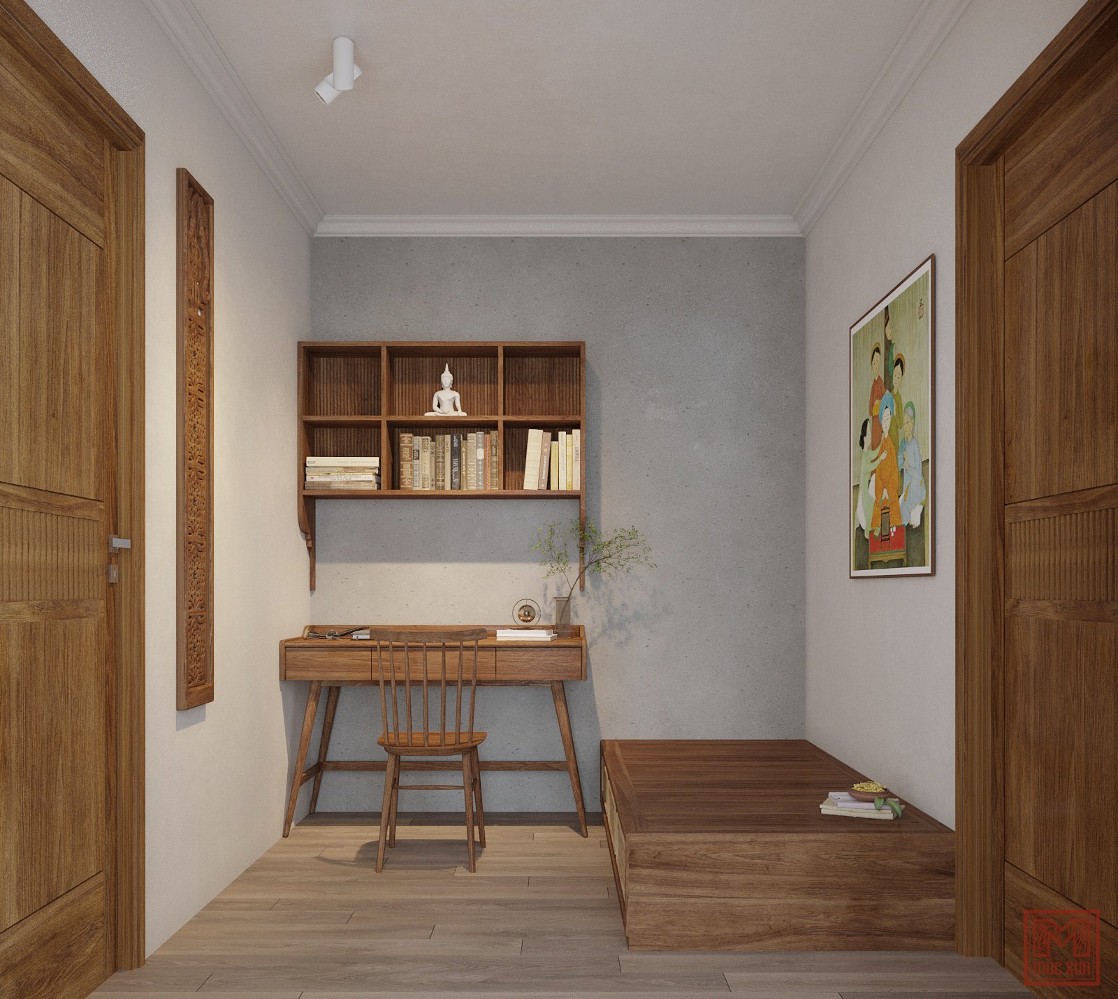 Sau những ngày làm việc mệt mỏi trong công việc, những lúc lưu thông tấp nập trên đường phố, sẽ có người muốn tìm đến một không gian yên tĩnh như một nốt lặng. Với gam màu chủ đạo là gam màu trầm, đơn sắc để mang đến không gian tĩnh lặng, trầm lắng giúp con người thoải mái hơn, thư giãn khi về đến nhà.